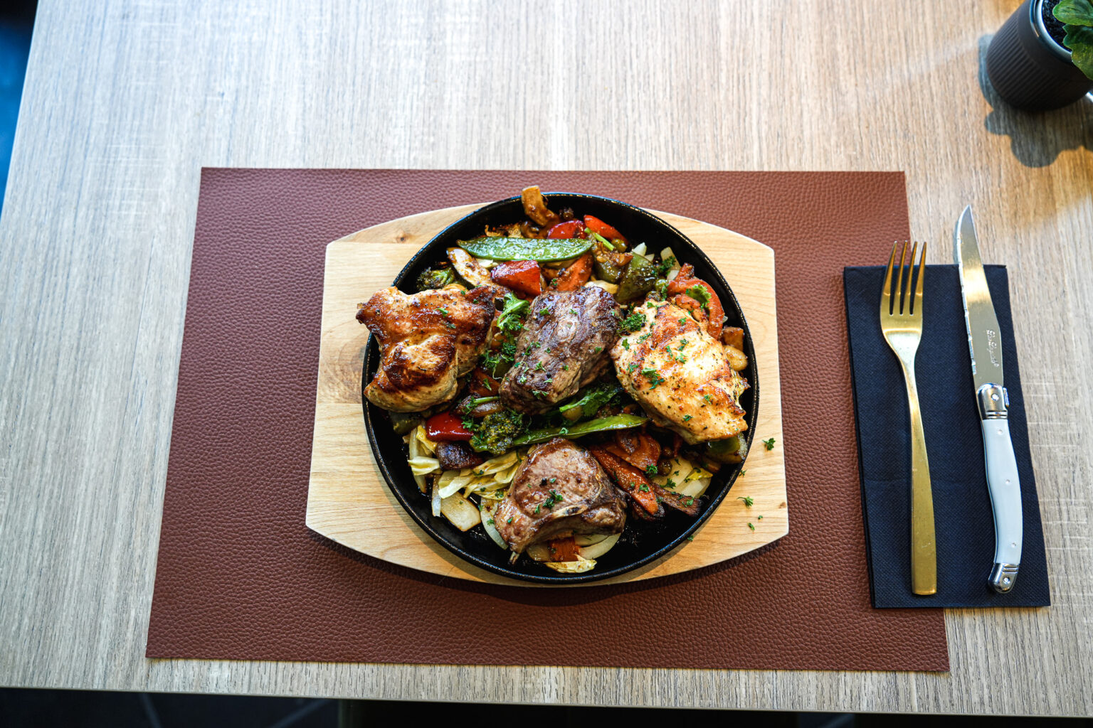 Onze favorieten? Rib-Eye, lamskroon of een klassieke vol-au-vent. Geserveerd met frietjes, groenten en een saus naar keuze: peperroomsaus, champignonsaus of Béarnaise.